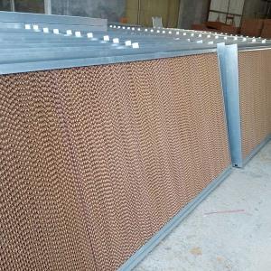 3.观察湿帘的水流和分布。水流要很小,并且沿着湿帘的波纹减慢。整个湿帘要均匀湿润,不得有干带或部分浓水流。在系统的初始运行中,如果在湿帘的某些区域发现喷水现象,主要是湿帘纸面上的毛刺造成的,可以通过轻轻地前后握住手掌来解决。如果在运行过程中发现喷水、干带或集中流,主要是由于供水系统设计不合理或供水压力不合适造成的,应重新设计供水系统或调整供水系统压力。